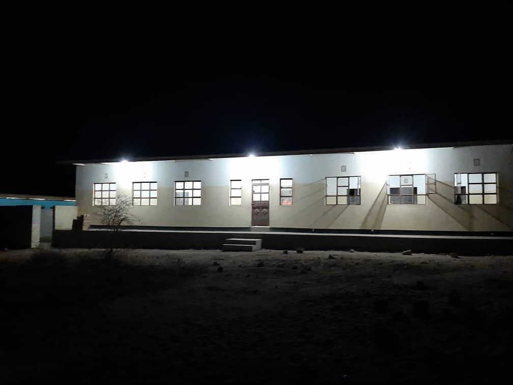 Lang is Mbaash afgesloten geweest van elektriciteit. Toen de kans op aansluiting zich voordeed hebben wij, door een vliegensvlugge crowdfunding de school met al haar gebouwen en de medische post aan kunnen sluiten op het net. De veiligheid is nu een heel stuk verbeterd en de medische post kan nu op elk gewenst moment patiënten ontvangen.